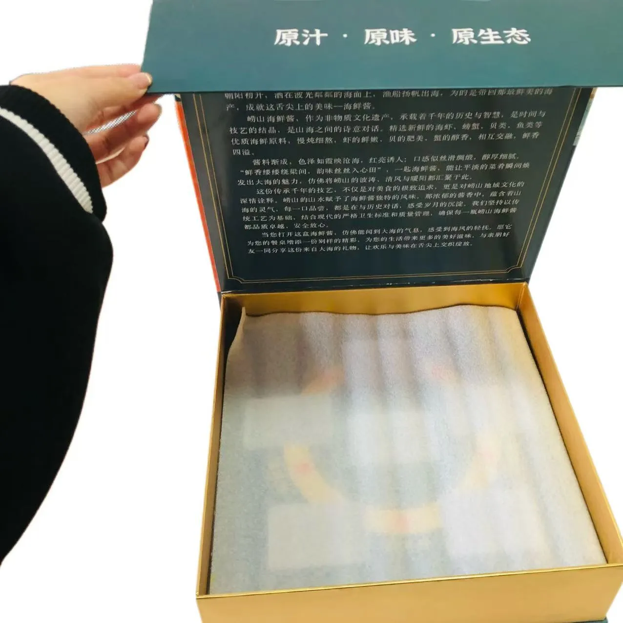 A Zemeijia összecsukható mágneses szósz csomagolódoboza egy mágneses záródású ajándékcsomagoló doboz, amelyet kifejezetten csúcskategóriás szószokhoz terveztek. Mágneses nyitószerkezettel rendelkezik, amely egyszerre ötvözi a ceremónia érzését és a gyakorlatiasságot. Ideális csomagolási megoldás a szósz termékek minőségének javításához.