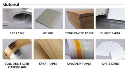 Művészeti papír, karton, hullámpapír, duplex papír, fehér kártya, nátronpapír, speciális papír, arany és ezüst karton, offset papír |